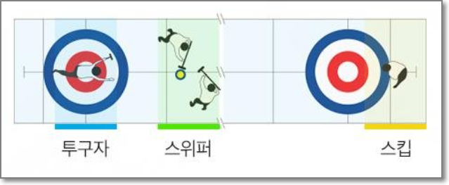 - 컬링은 4명이 한 팀으로 이루어져 있다. (믹스 더블의 경우에는 남, 녀 혼성으로 2명)